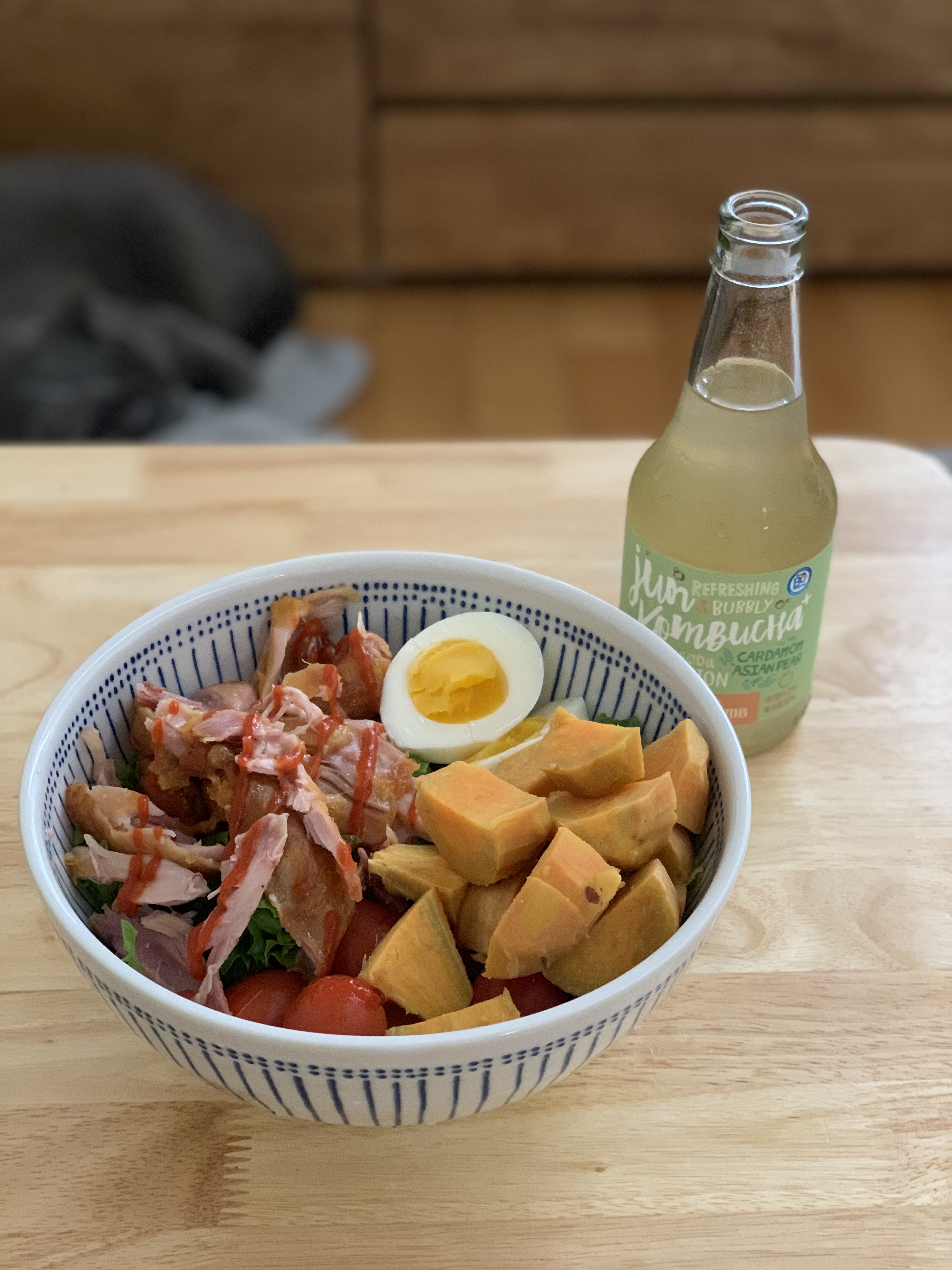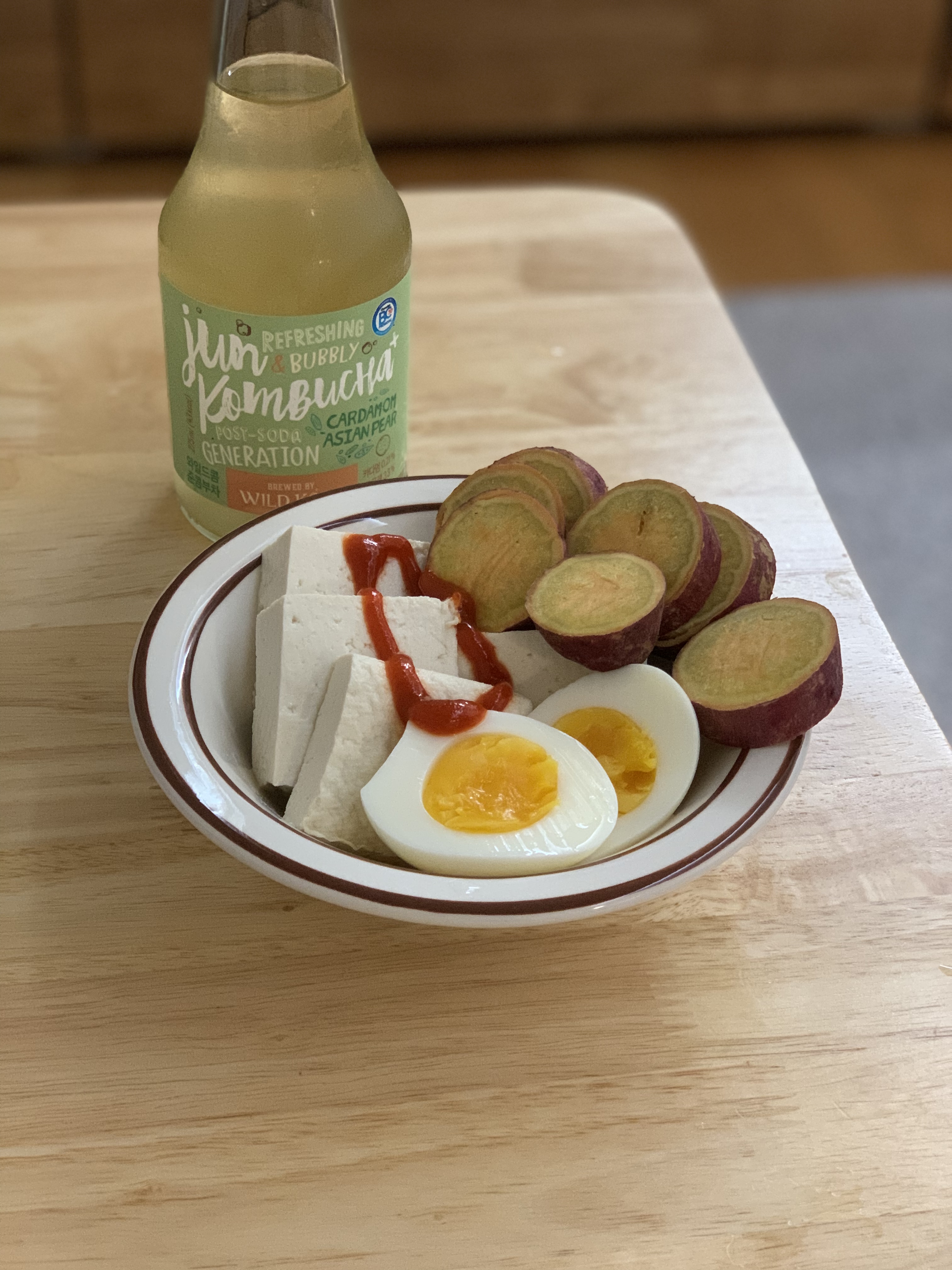 두부 100g + 반숙계란 1 + 고구마 130g + #준콤부차