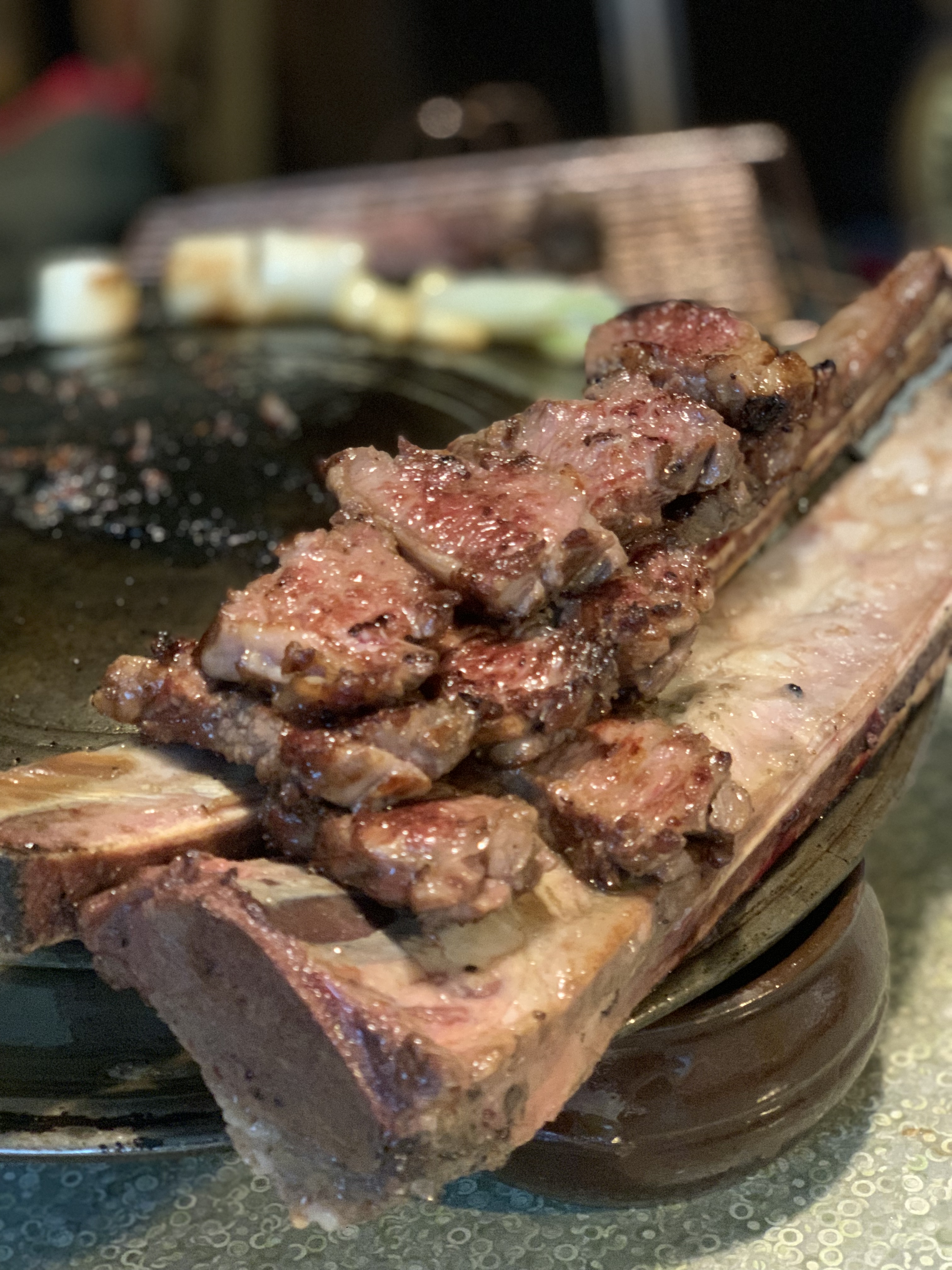 고기가 나왔고 정성껏 구워주십니다. 일단 뼈에 붙어있는 채로 나오기 때문에, 뼈에서 분리해서 가위로 잘 잘라 굽는데 조금 오래걸렸지만, 노롯노롯하니 맛있게 구워져서 먹는데 기다림이 전혀 아깝지 않았어요.