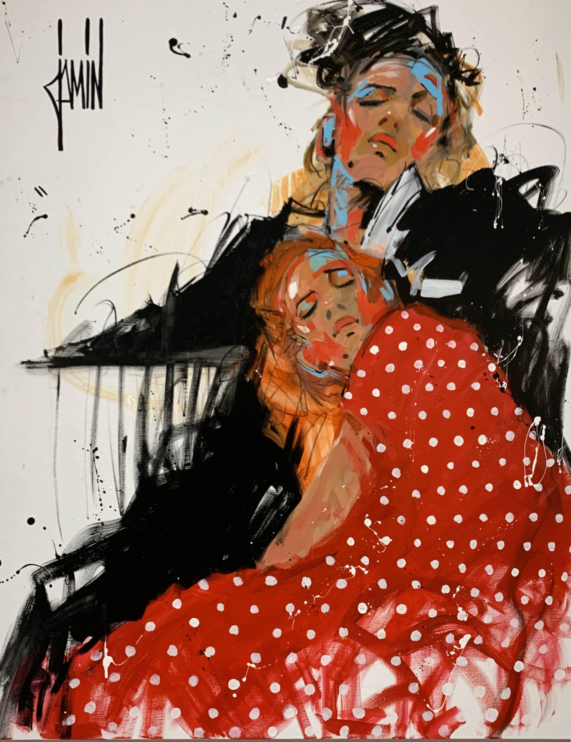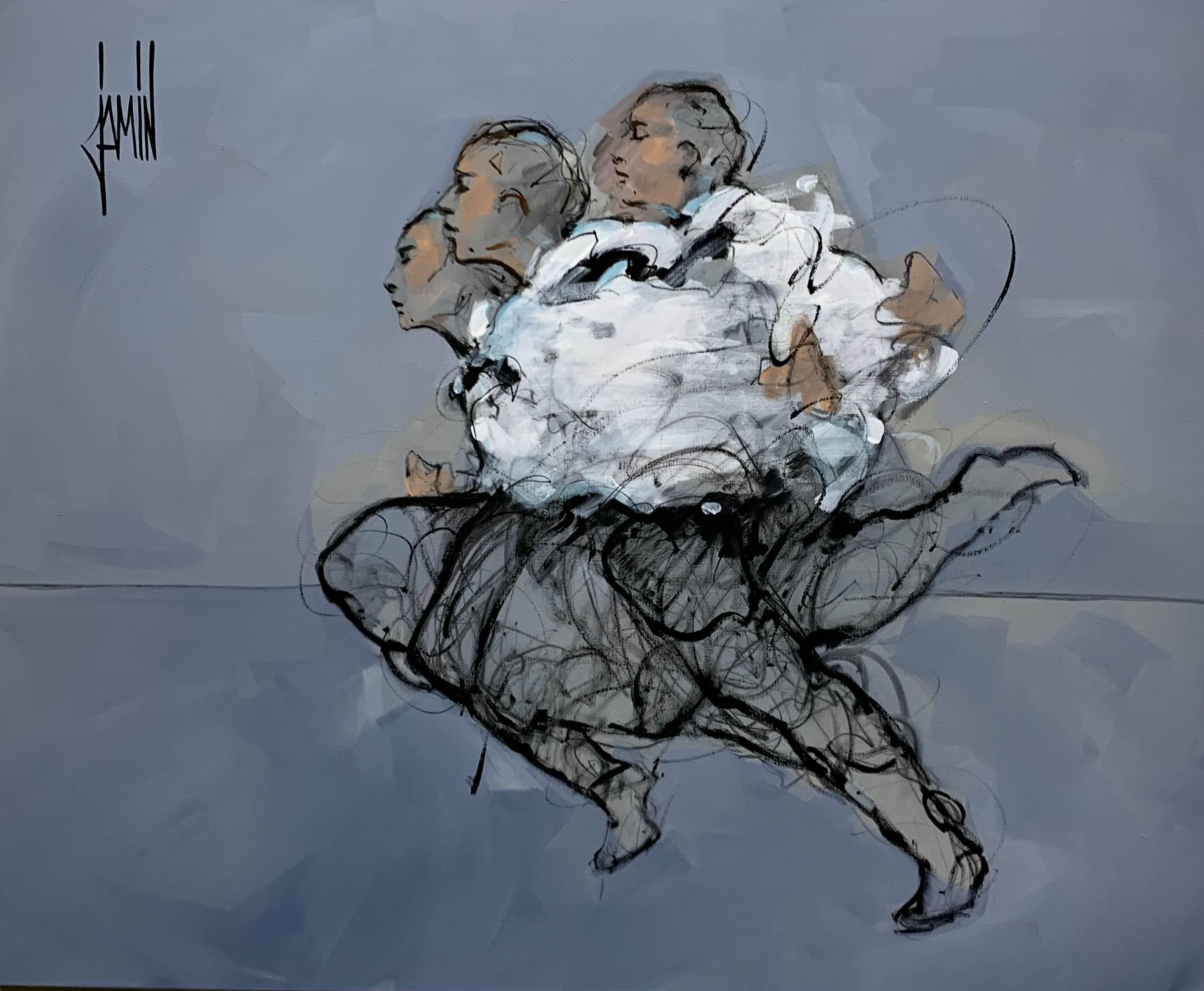 전시장을 들어서자마자, 액자가 되어있지 않은 캔버스 속의 다비드 자댕의 작품들은 마치 살아 움직이는 것 같은 생동감을 보여주고 있었습니다. 액자 없는 작품들은 마치 자유를 만끽하듯 자신들의 매력을 마음껏 드러내고 있었습니다. 그의 붓터치는 거침없었으며 캔버스 속 인물들의 움직임을 몇 번의 터치로 생동감을 주었습니다. 색은 강렬했으며, 과감하게 흩날리고 엉킨듯한 자국들은 자유롭게 캔버스 위에서 춤을 추는 듯했습니다.