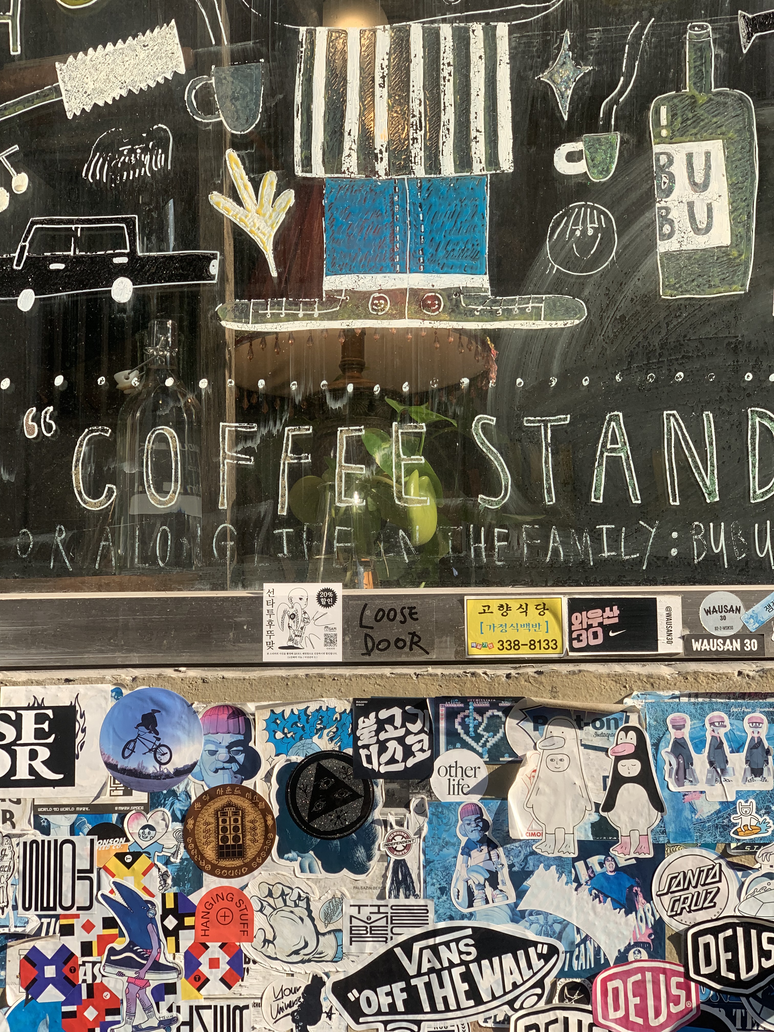 좀 걷다가 지도에 찜해둔 카페 '무슈부부커피스탠드'가 있어서 들러보았습니다. 외진데 있어서 사람이 없을줄 알았는데, 대기까지 있어서 살짝 당황했습니다.