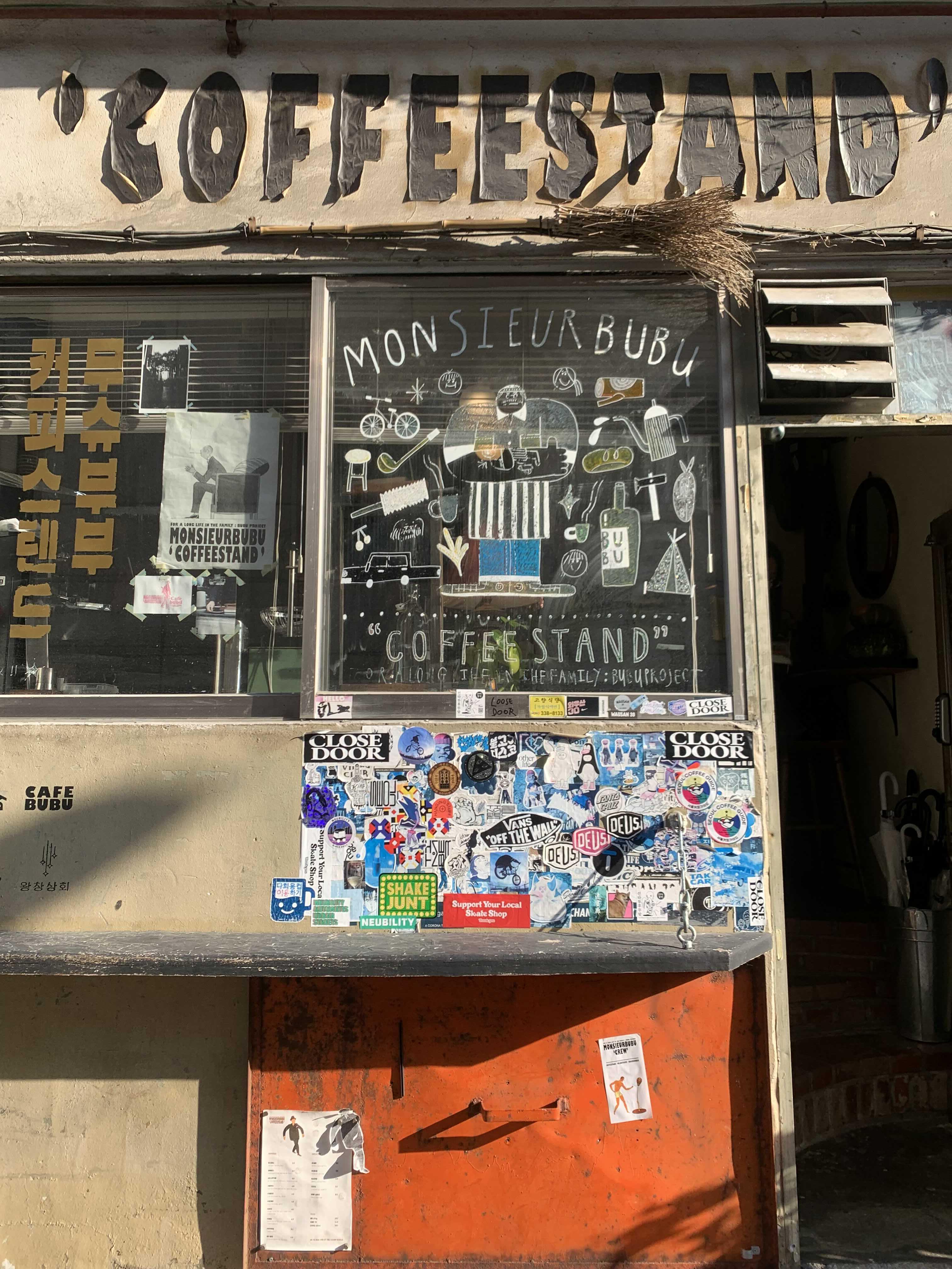 좀 걷다가 지도에 찜해둔 카페 '무슈부부커피스탠드'가 있어서 들러보았습니다. 외진데 있어서 사람이 없을줄 알았는데, 대기까지 있어서 살짝 당황했습니다.