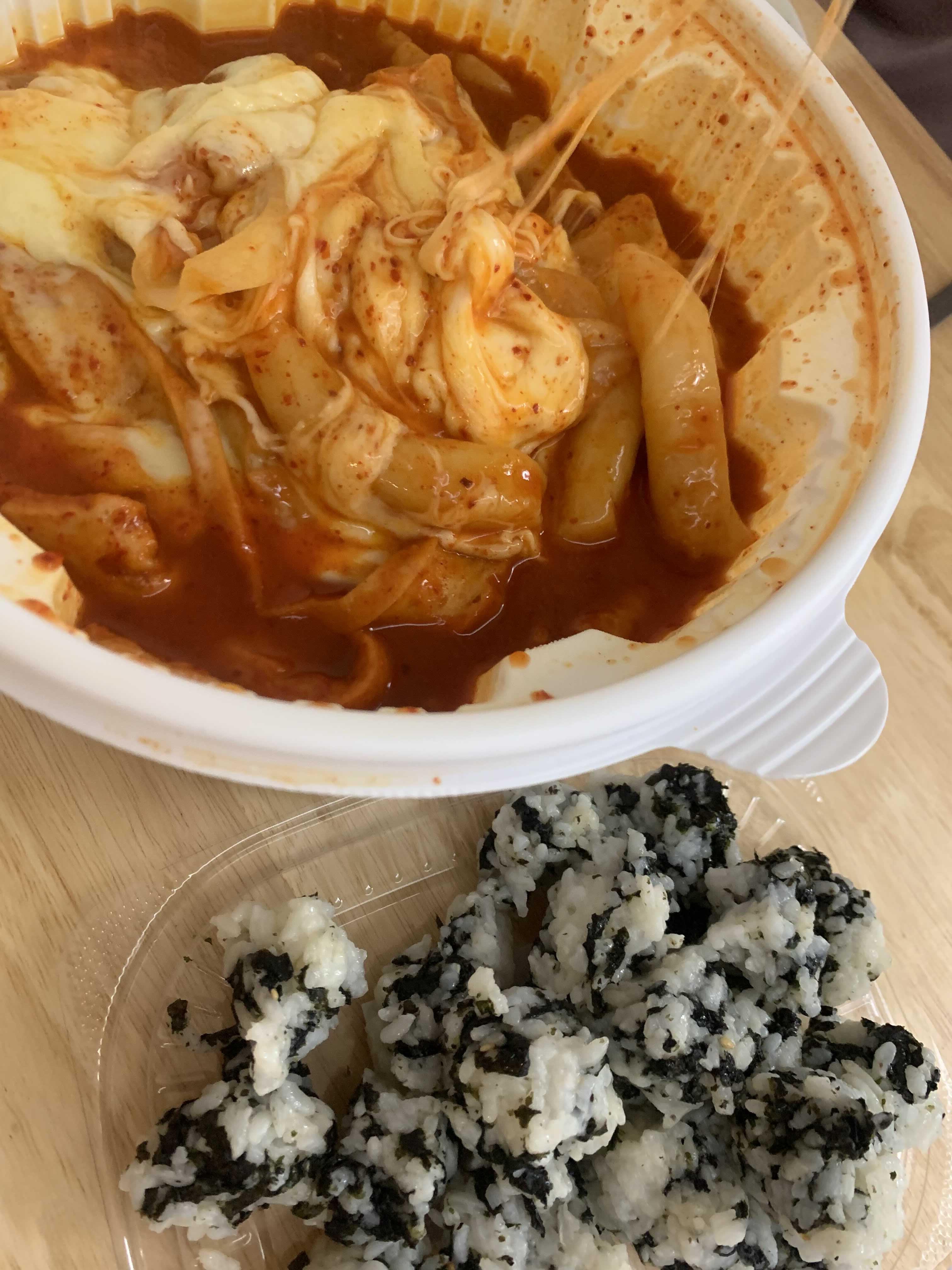 엽떡 착한맛 + 계란찜 + 주먹밥 + 탄산수