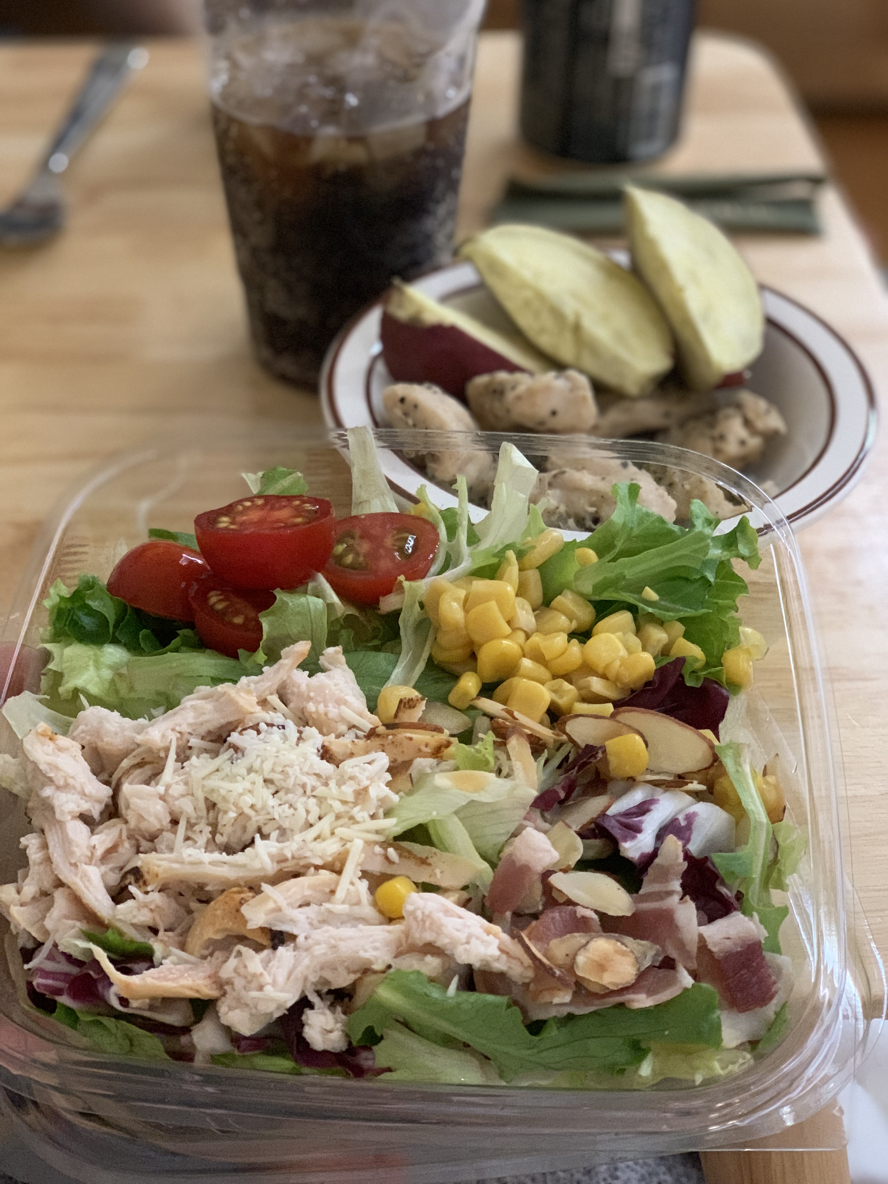 파리바게트 로스트치킨 샐러드 + 바르닭 블랙페퍼 닭가슴 80g + 고구마 80g + 제로팹시