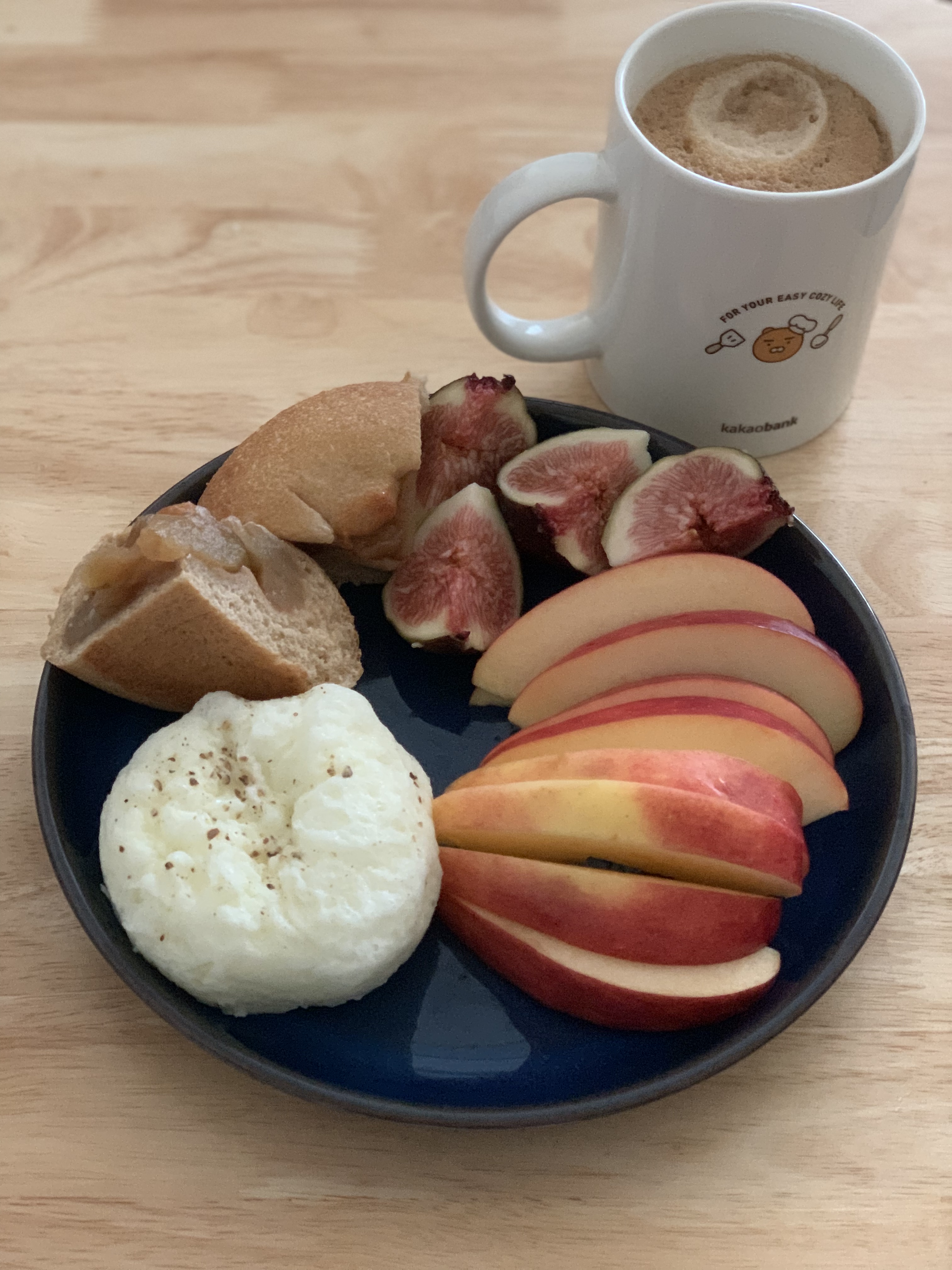 난백찜 100g + 사과1/2 + 무화과1 + #더브레드블루 통밀사과빵 + 커피