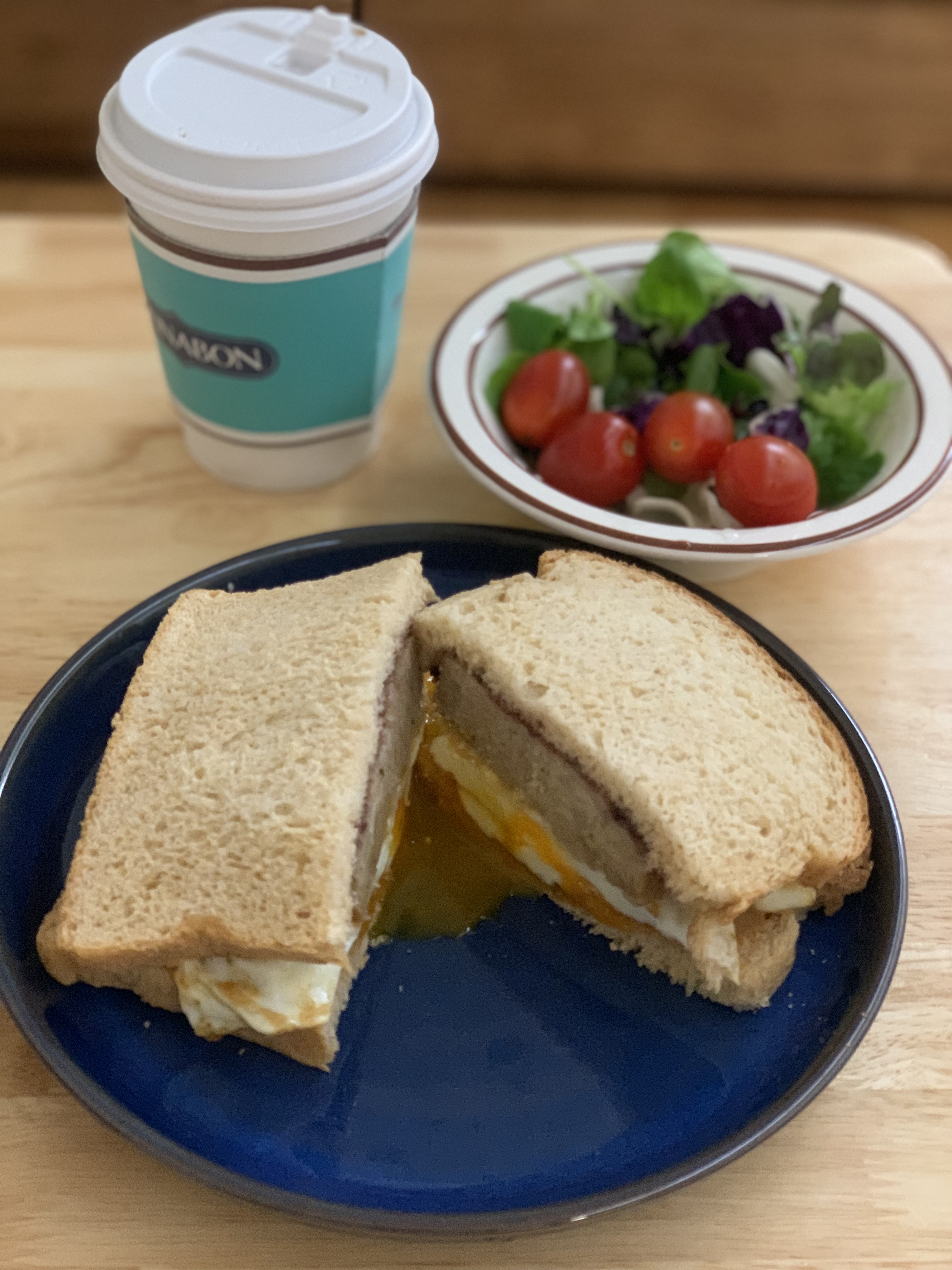 통밀식빵 2 + 후라이2 + 토마토 + 샐러드 + #바르닭 직화 그릴 닭가슴살 스테이크 갈릭&갈비맛 + 서울숲에서 주차비때매 사온 커피