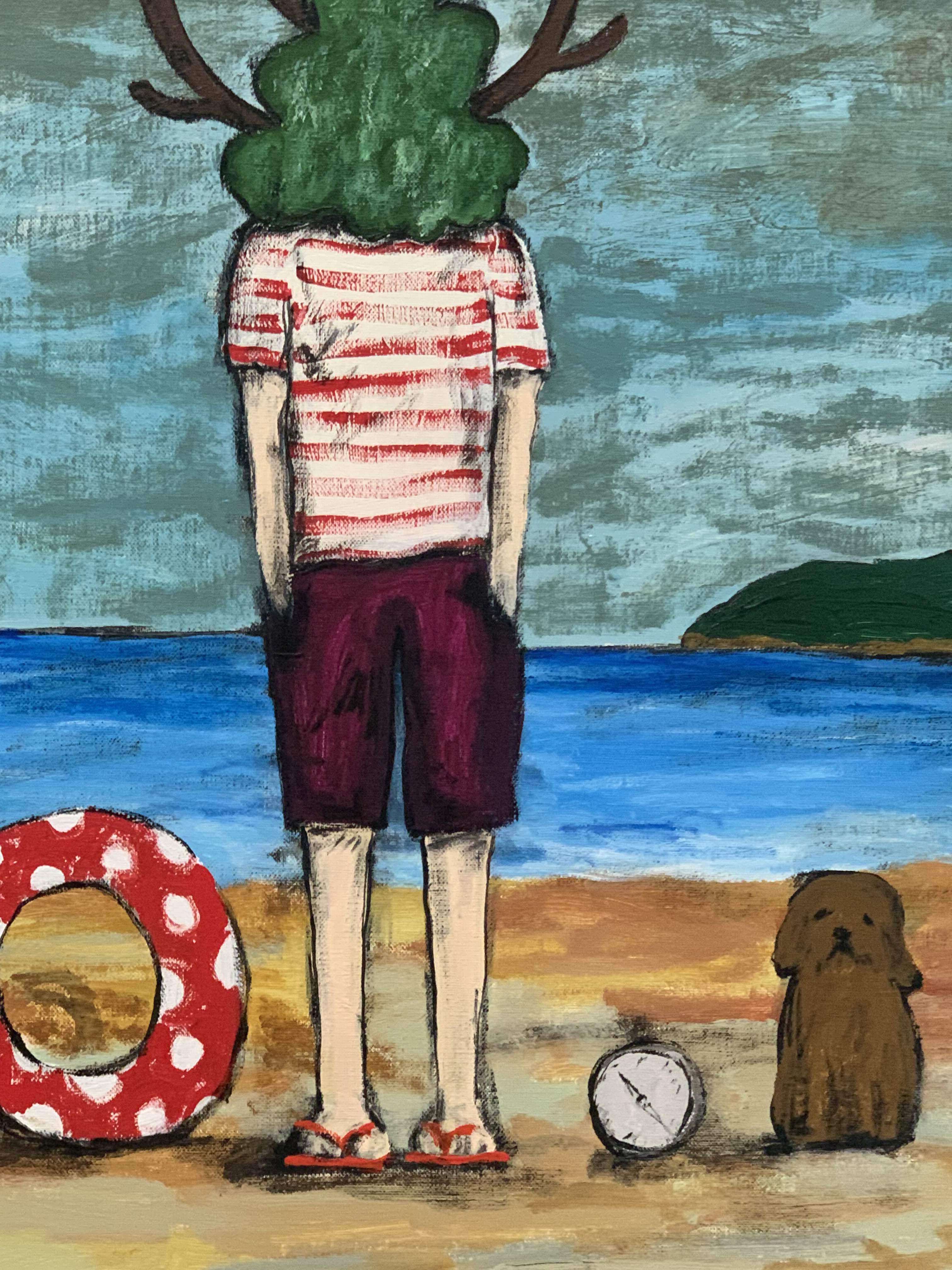 작가 유이치 히라코는 매번 특정한 캐릭터를 등장시키는데, 이 캐릭터는 작가가 일본 민속 설화의 나무 정령을 참고하여 탄생시킨 것으로 사람의 몸에 나무 머리가 특징입니다. 작가는 이 혼종의 인물이 자신의 자화상이자 자연과 관계를 맺고 있는 모든 사람의 초상이라고 말합니다. 결국 이 캐릭터는 인간과 자연을 잇는 매개체인 셈이며, 때로는 강가, 때로는 숲속이나 방 안에서 동식물들과 어우러지는 장면을 연출하며 회화, 조각, 설치 등의 다양한 매체로 변주, 관객들에게 자연에 대한 감각적 이해도를 높이고자 하였습니다.