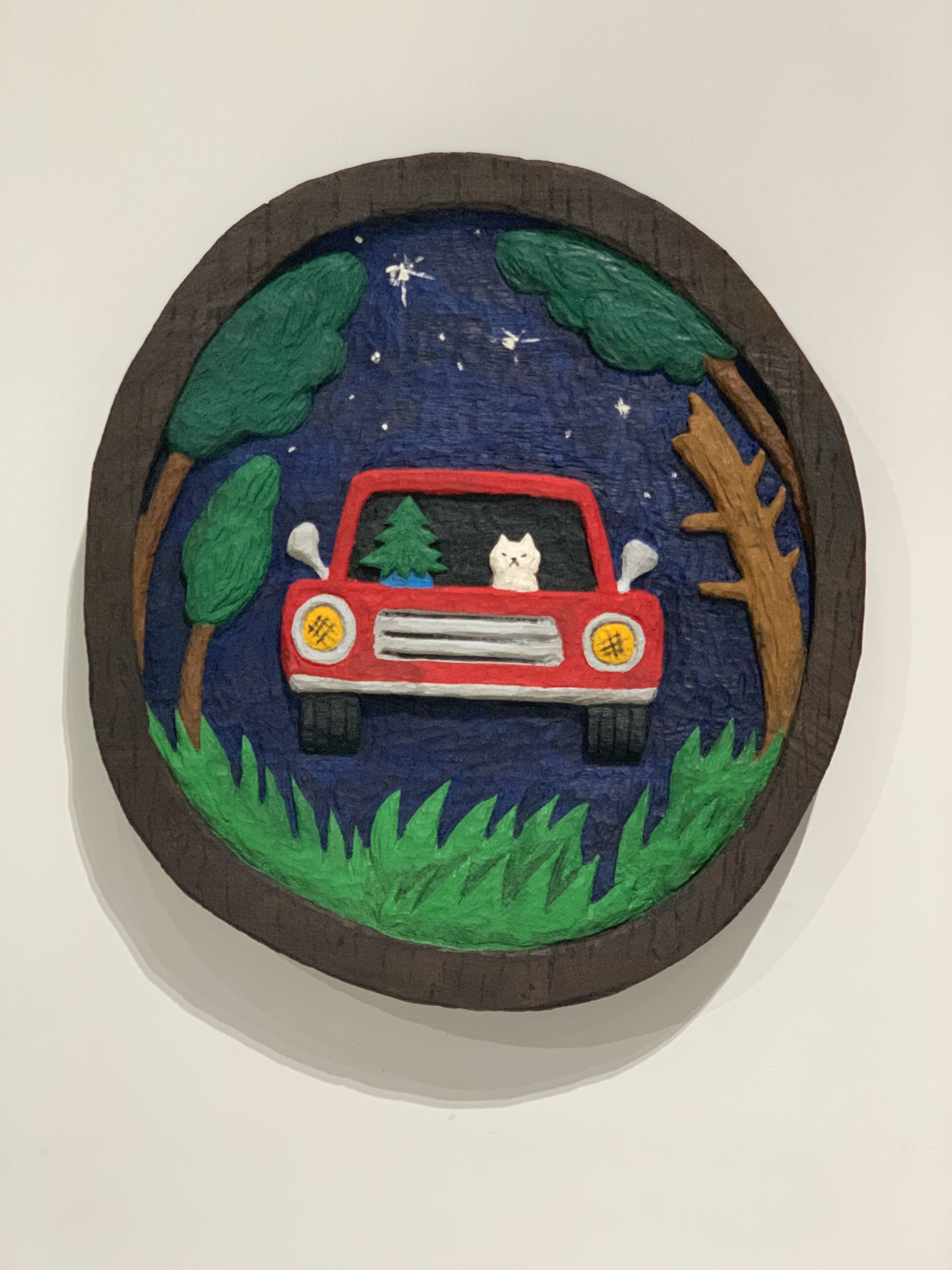 인간과 자연의 공존을 추구하는 유이치 히라코는 이번 전시 <여행>에서 자신의 캐릭터와 동식물이 함께하는 여정을 다루었습니다.