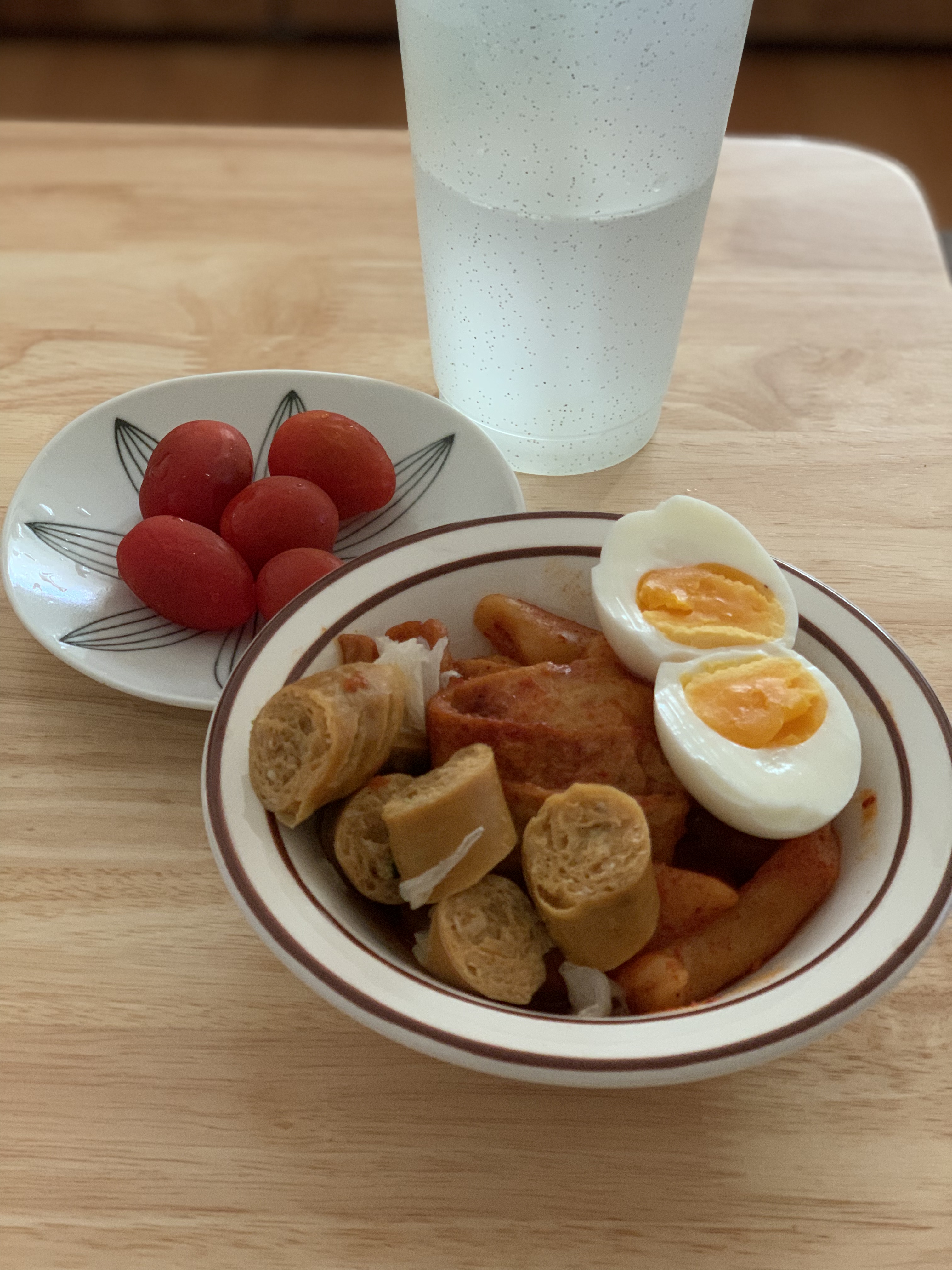떡볶이 먹을만큼 덜어서 + 반숙란 + 방토