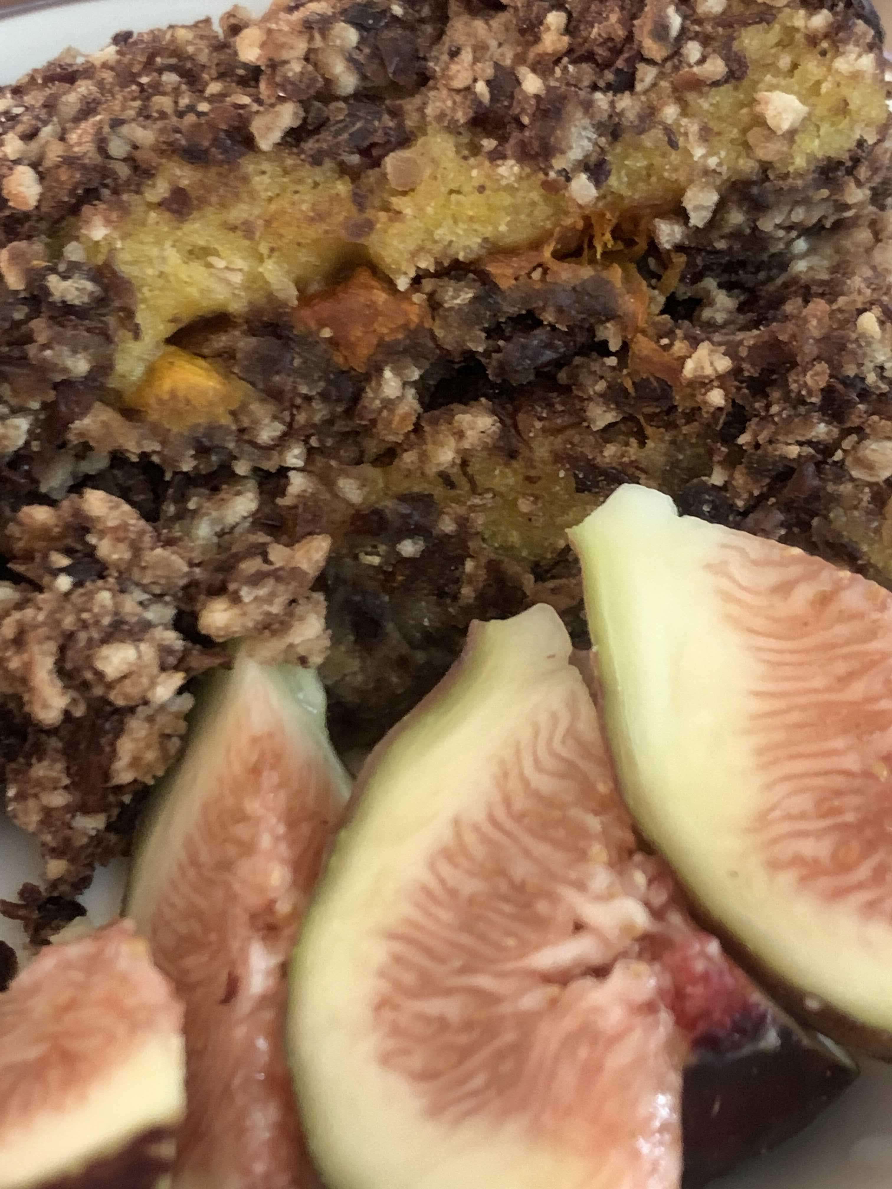 그릭요거트50g + 오나오 호박초코스콘 + 사과1/2 + 무화과 + 시나몬가루 + 커피